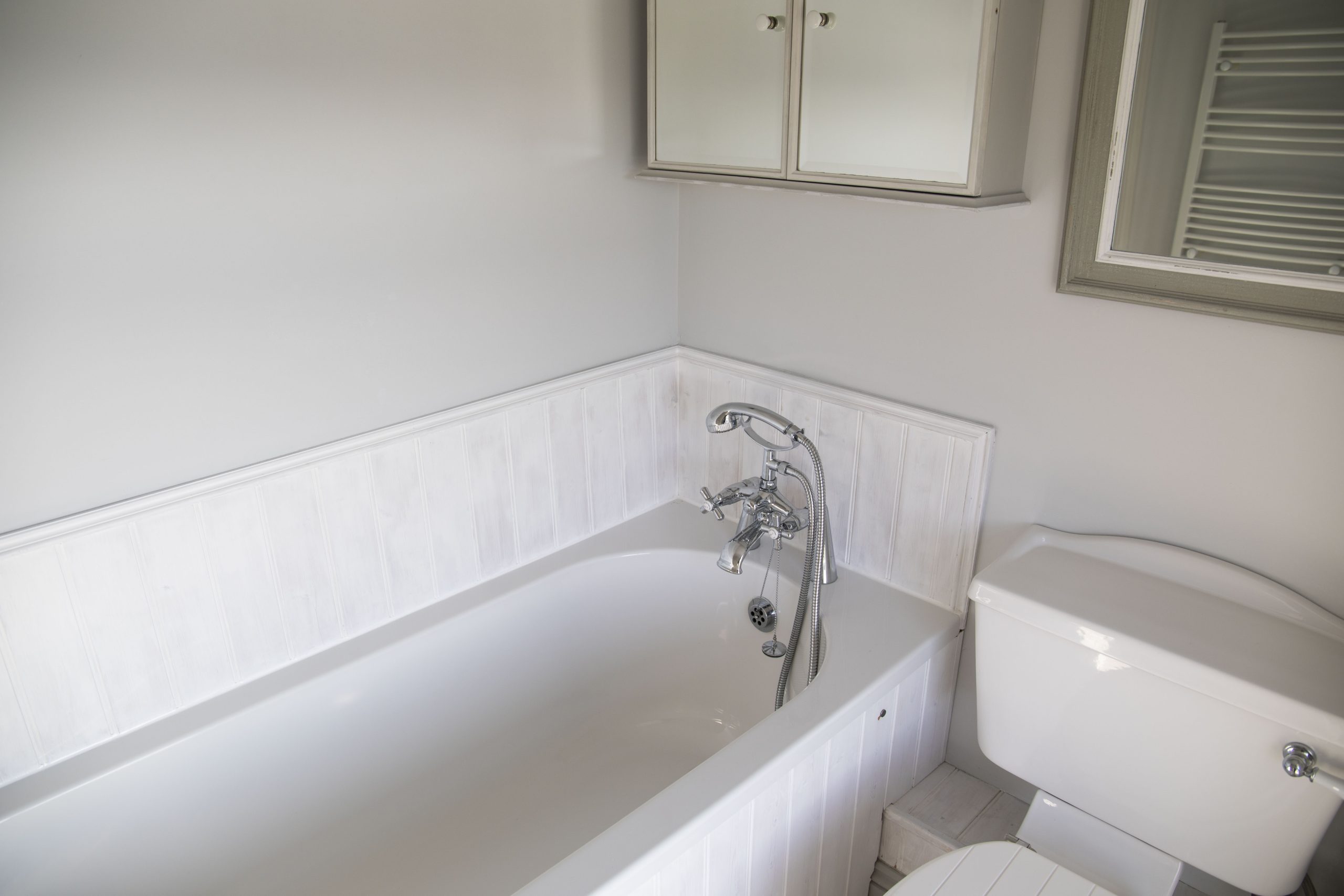 Upstairs, two serene bedrooms await — one with a king-size bed and the other with a versatile zip-and-link twin/super king bed. The family bathroom features a shower over the bath, a toilet, and a washbasin, all with lovely creek views.