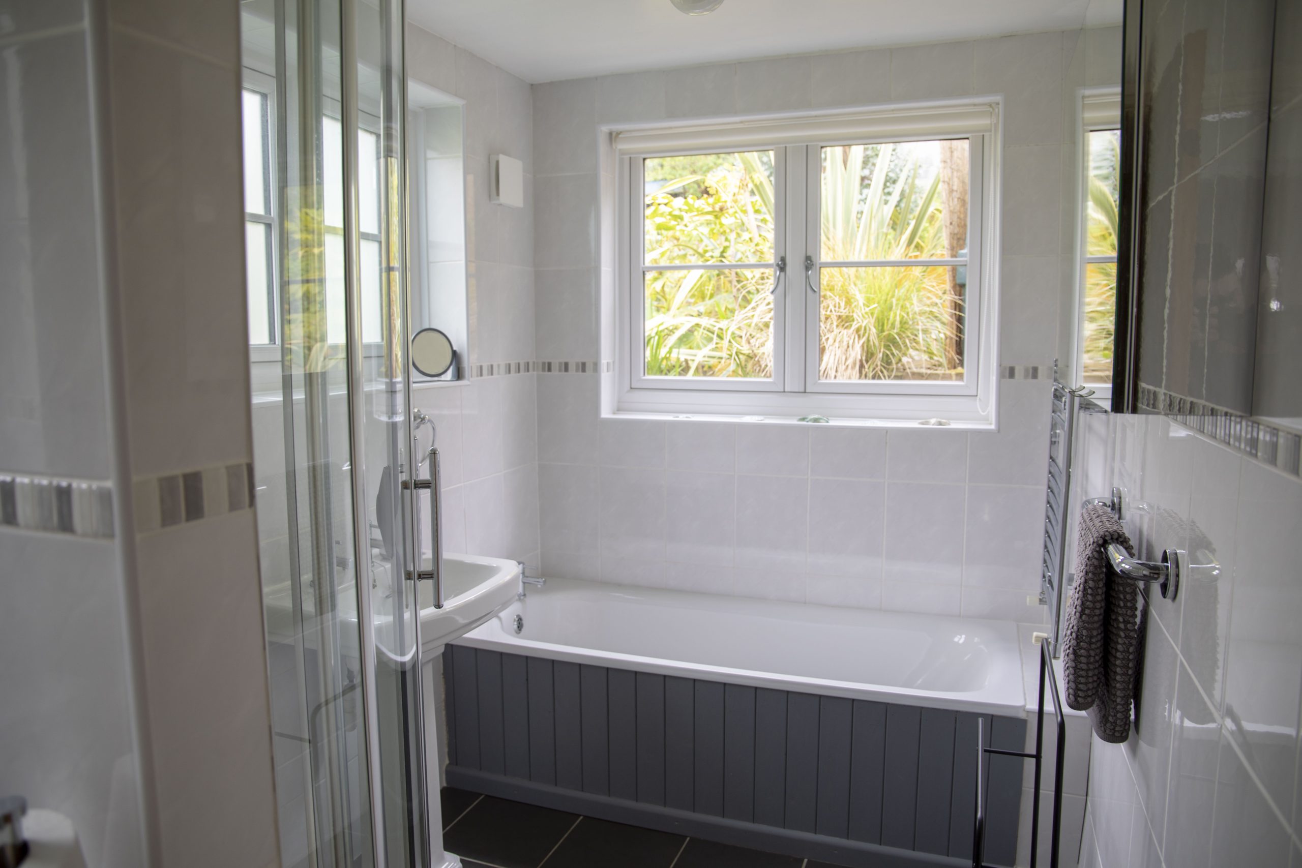 The utility area has a washing machine and a cloakroom with a toilet and a washbasin located at the back of the cottage. Upstairs you will find two bedrooms, one double & one twin, along with the family bathroom, with bath, separate electric shower, wash hand basin & toilet. At the back of the cottage, steps lead up to the terraced garden, with a patio area, BBQ and garden furniture.