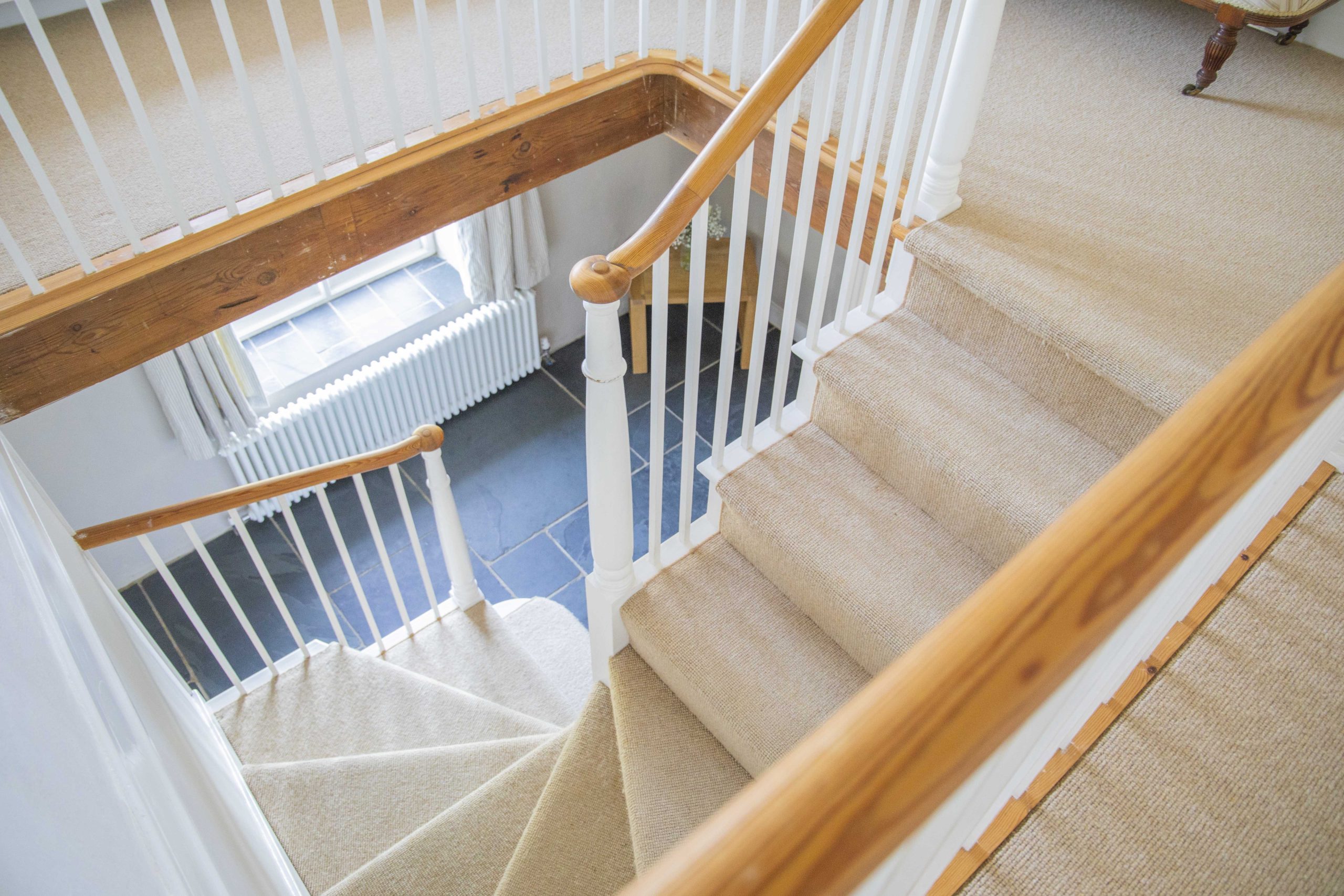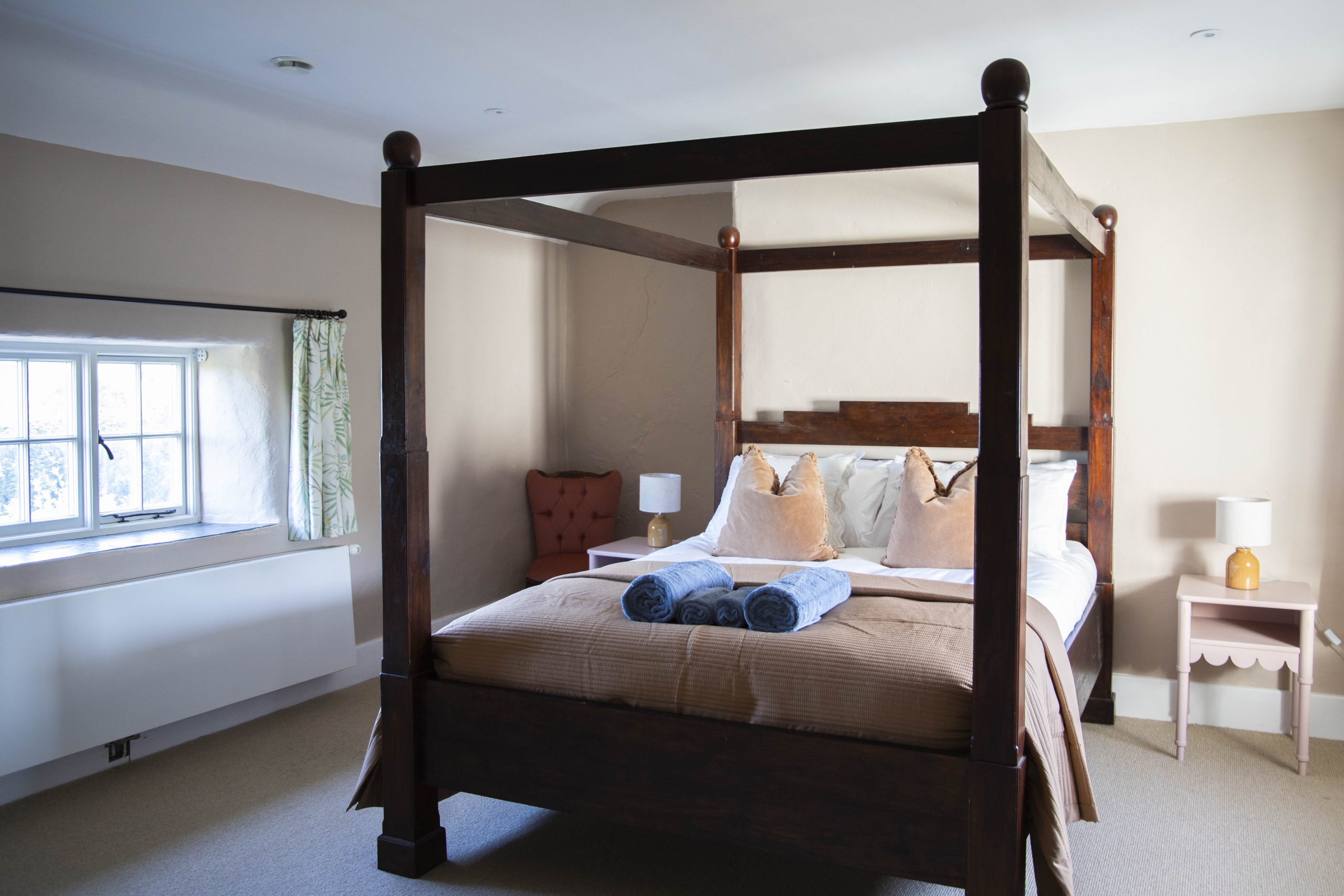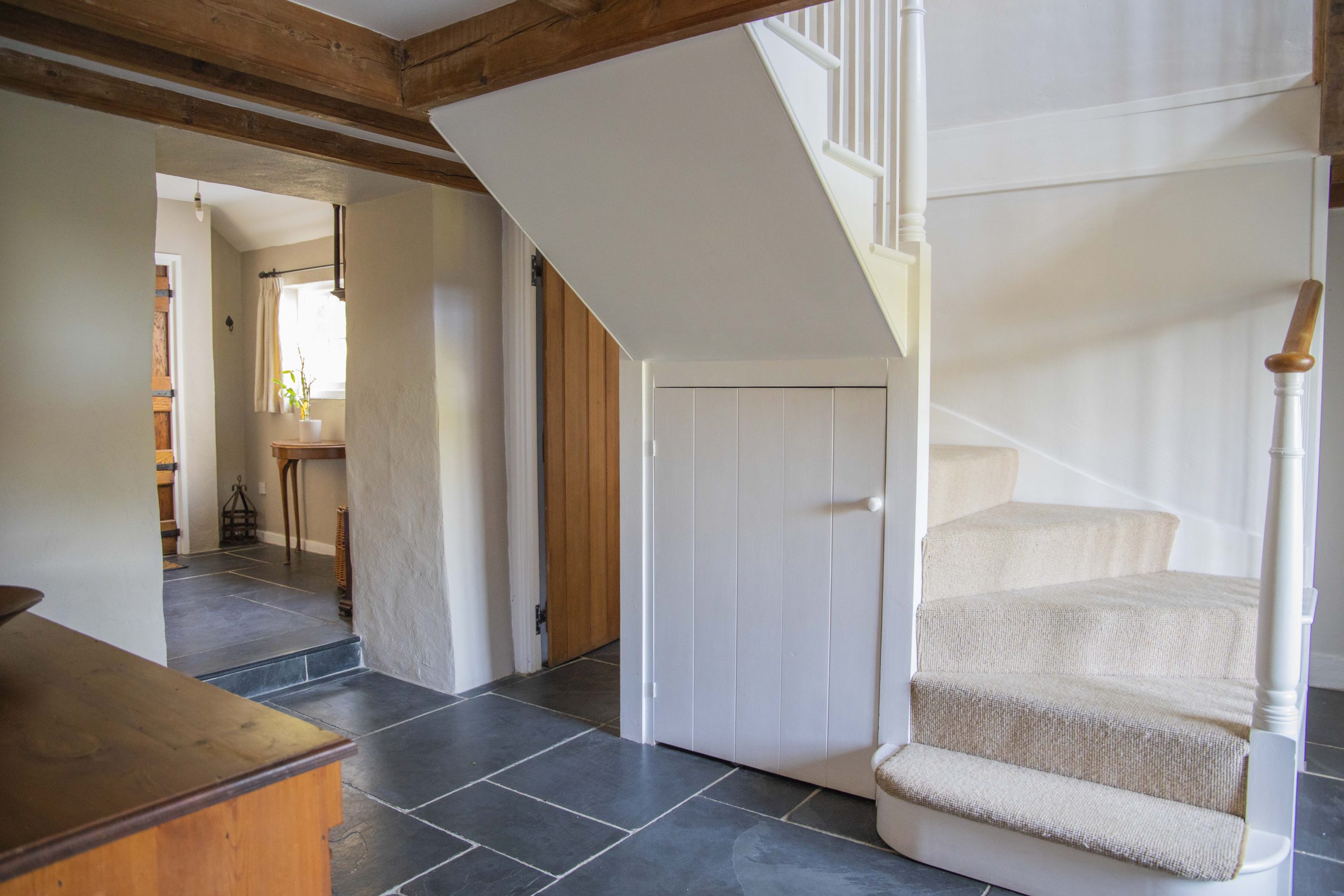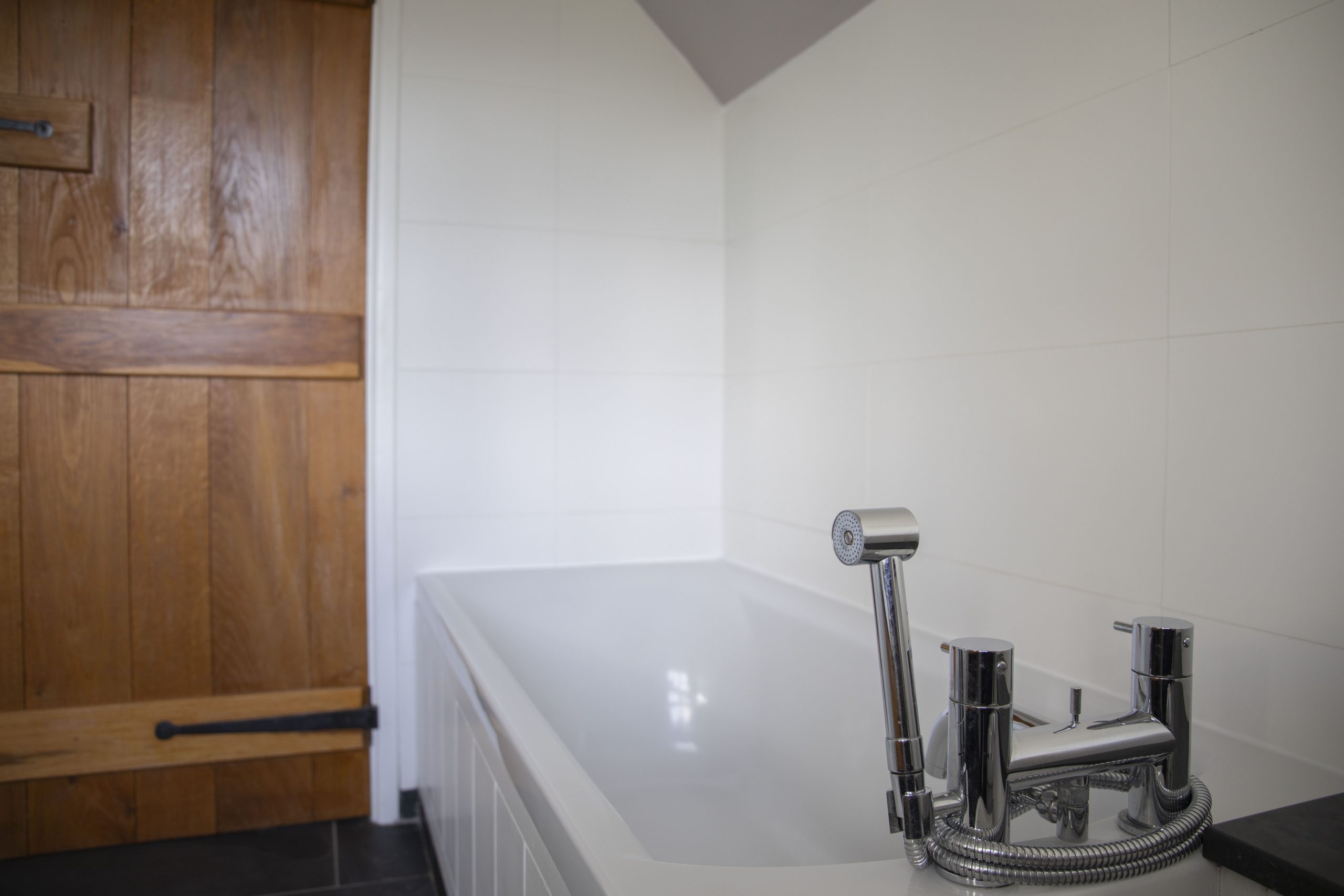Upstairs are three bedrooms: two super-king rooms, one with its own en-suite bathroom, and a third bedroom with twin beds and en suite. A generous family bathroom is located in on the landing, offering a bath, separate shower, toilet, and wash-hand basin.