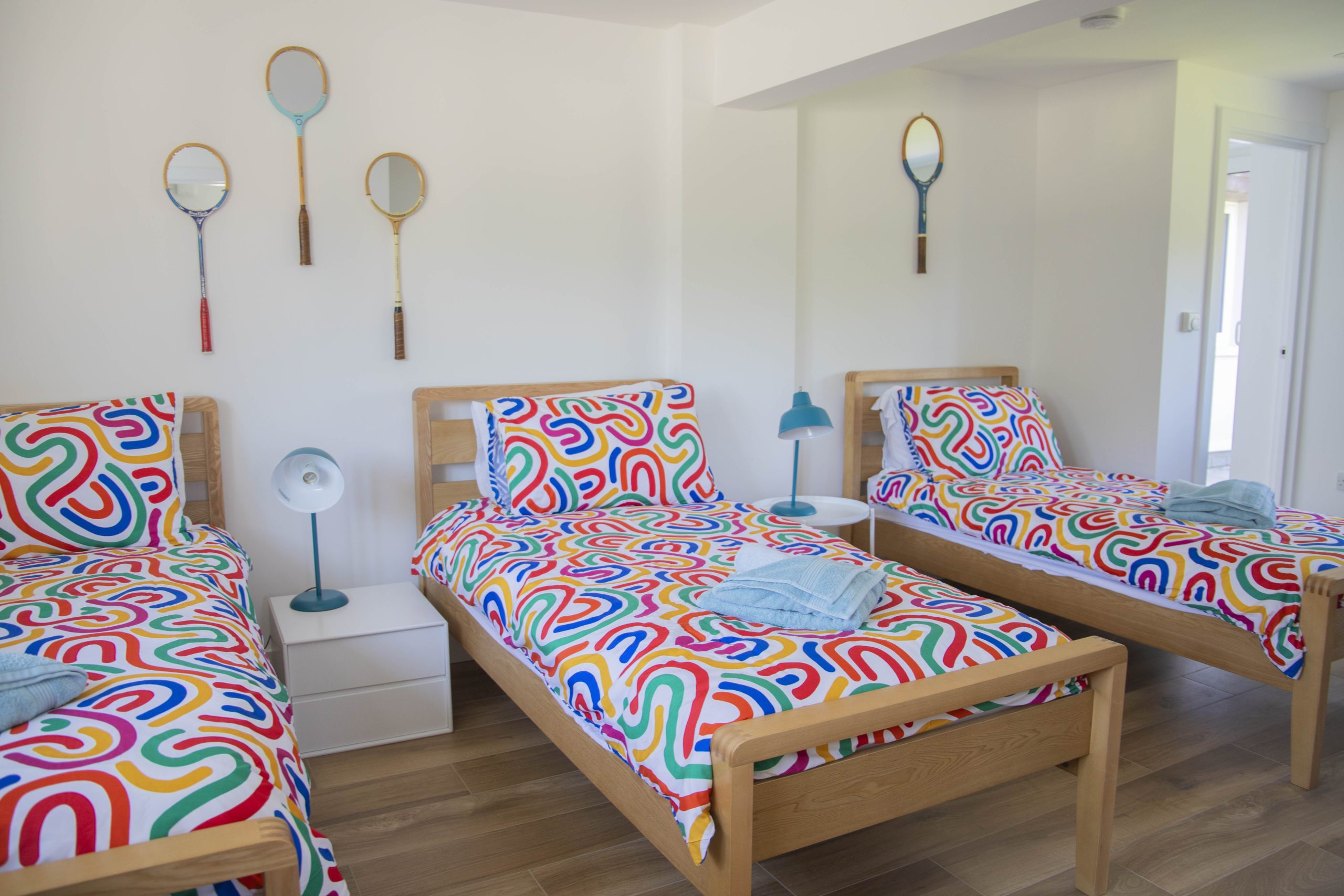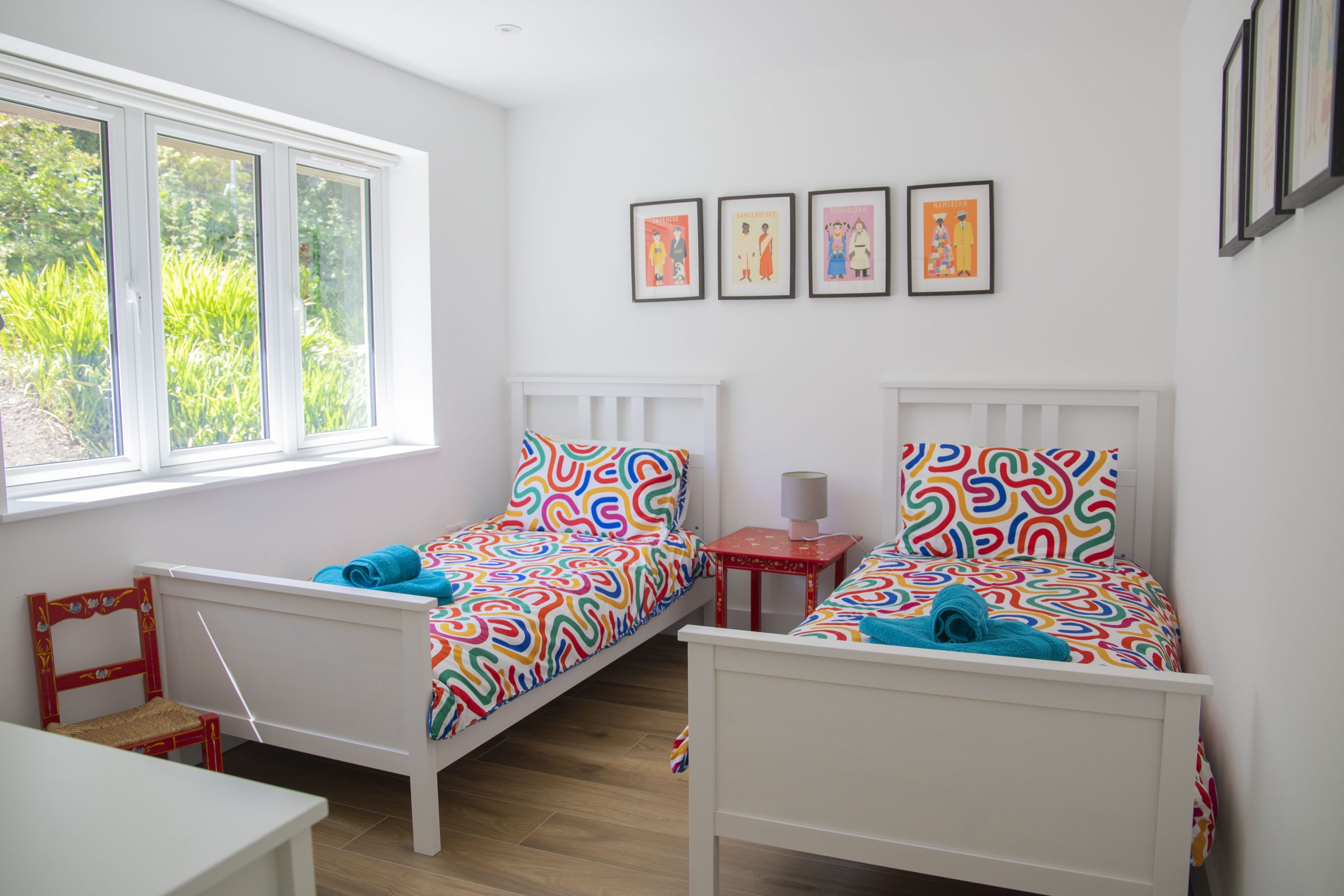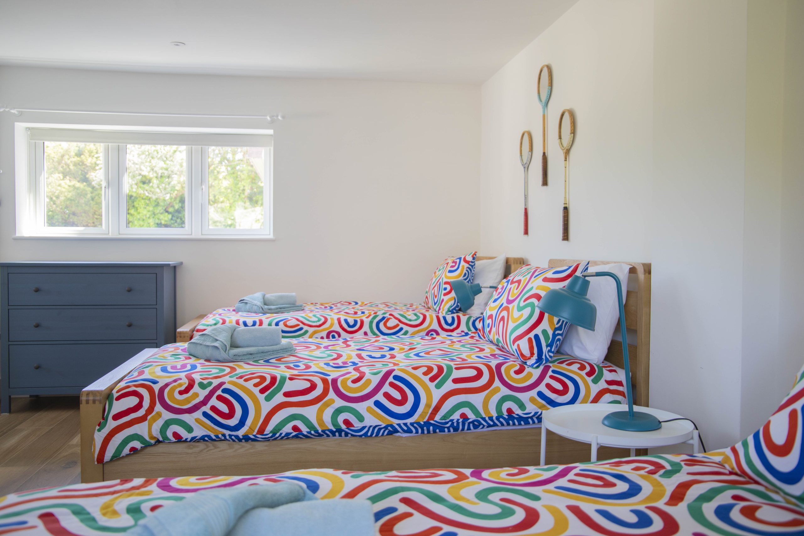 On entering the house on the ground floor is a capacious hallway, with the ground floor sitting room, utility room with washing machine and clothes airier and cloakroom. The remainder of the ground floor has been arranged with 4 bedrooms, one king-size double with an en-suite bathroom, a second king-size double along with the twin bedroom sharing a bathroom and the quadruple twin bedroom with an en-suite bathroom.