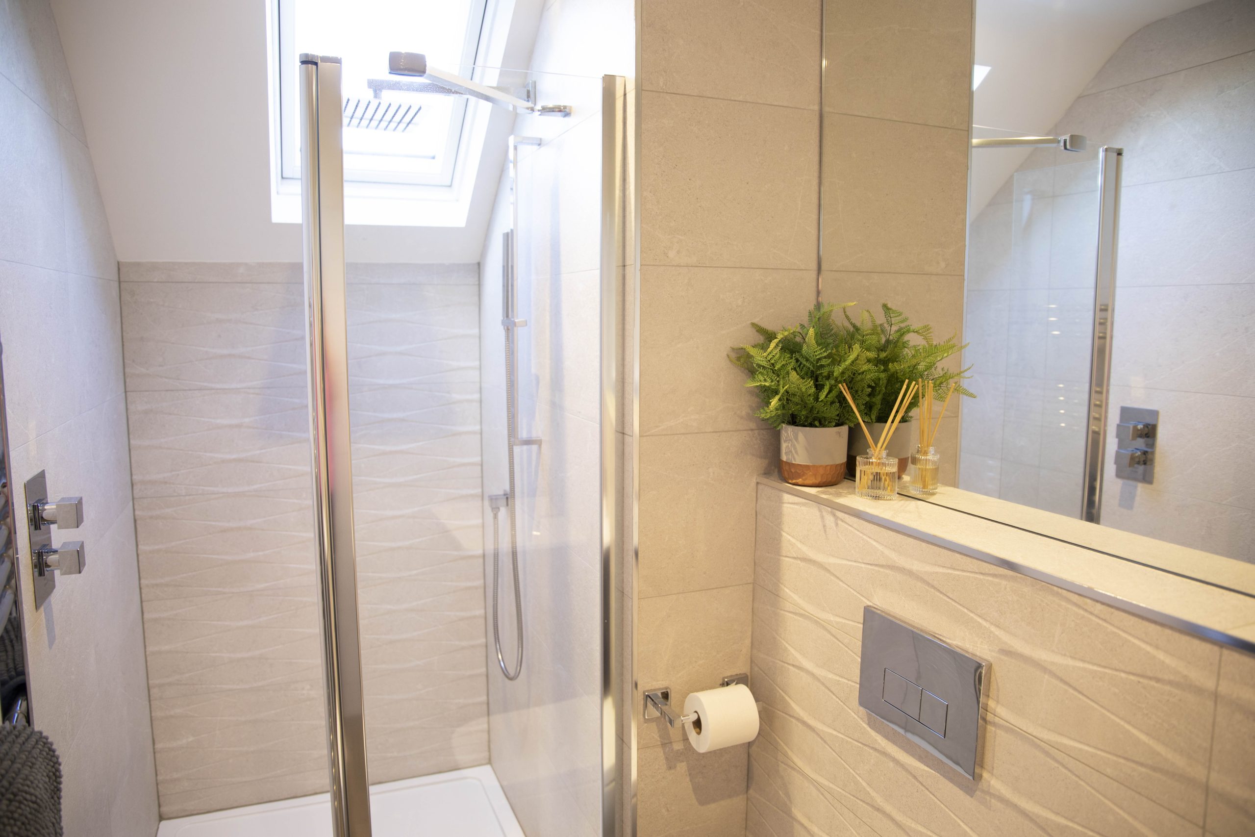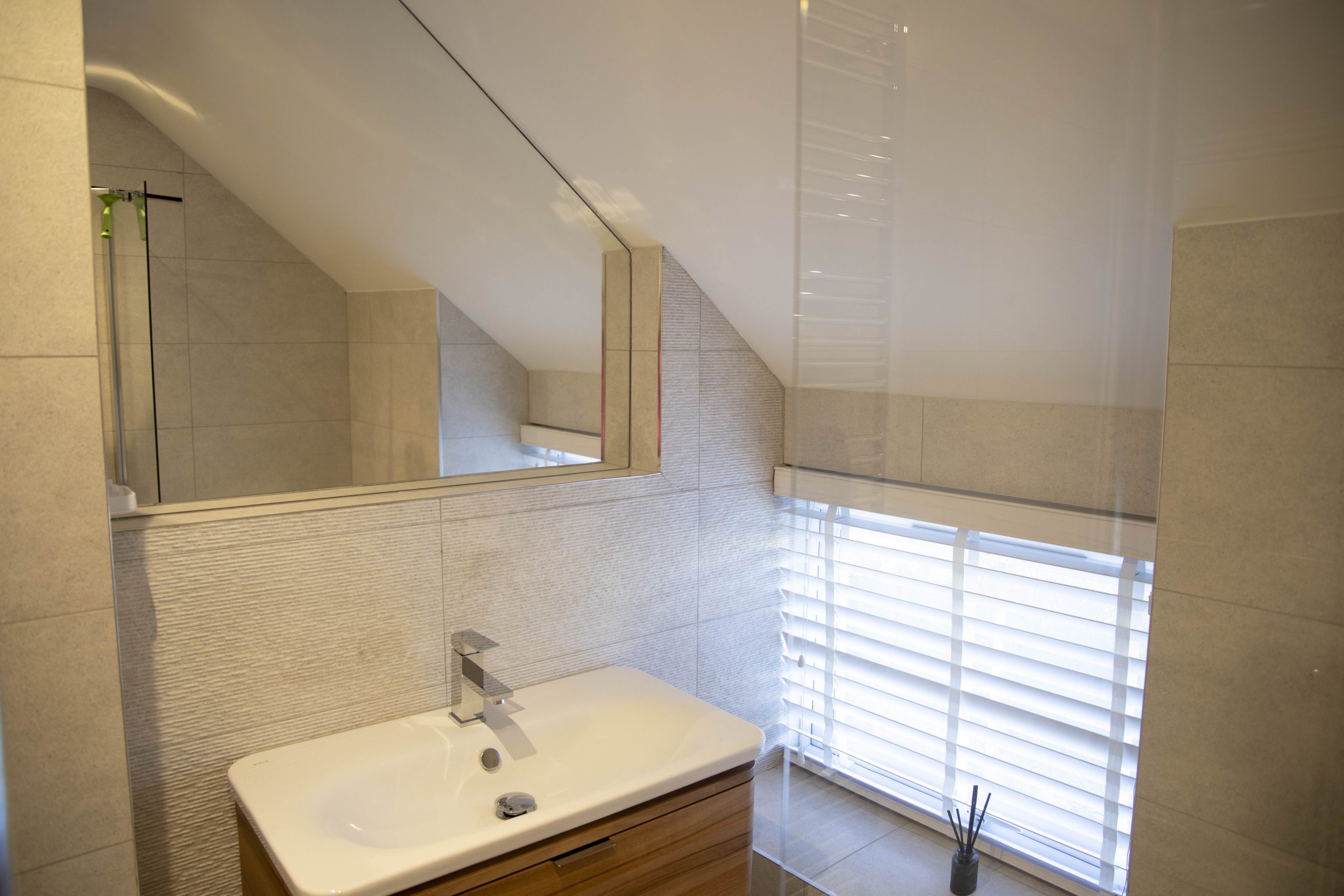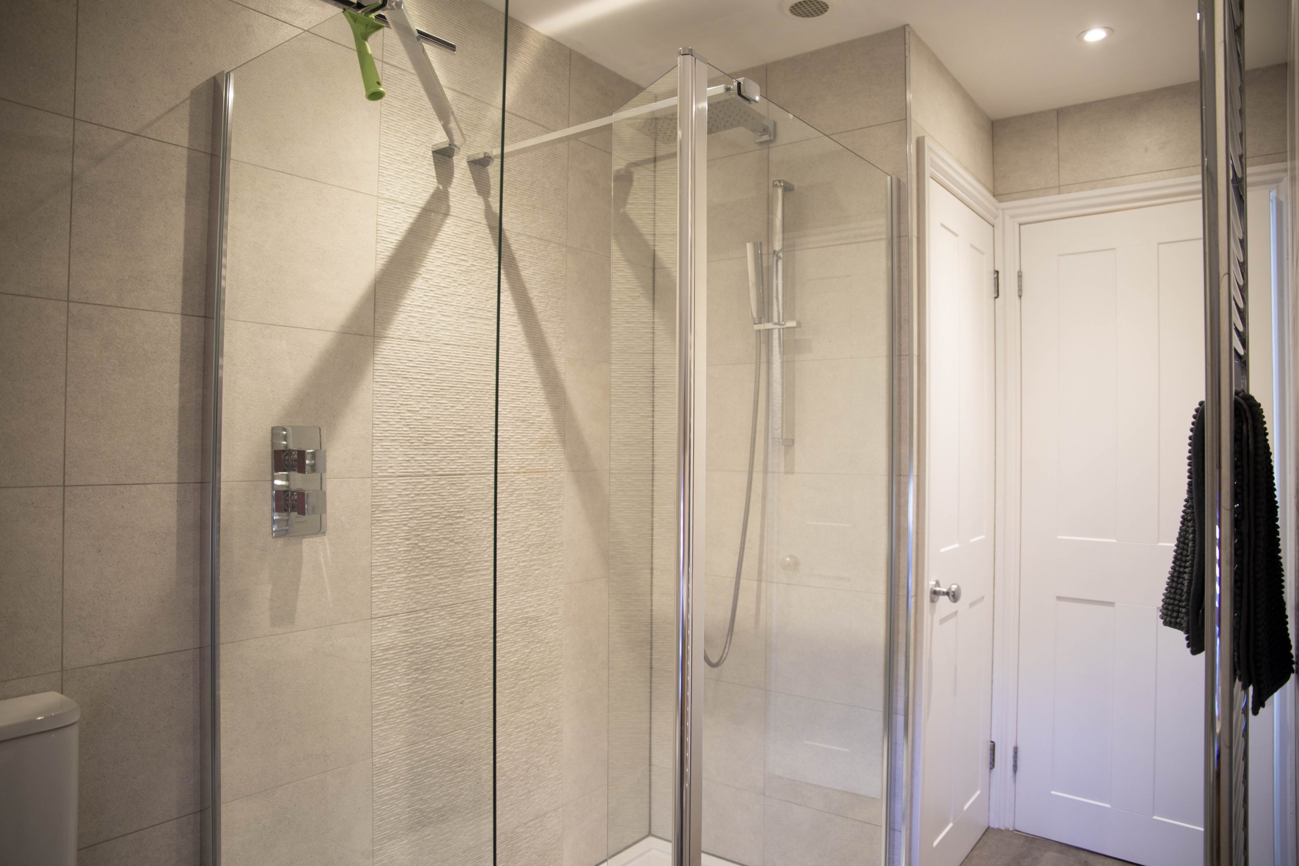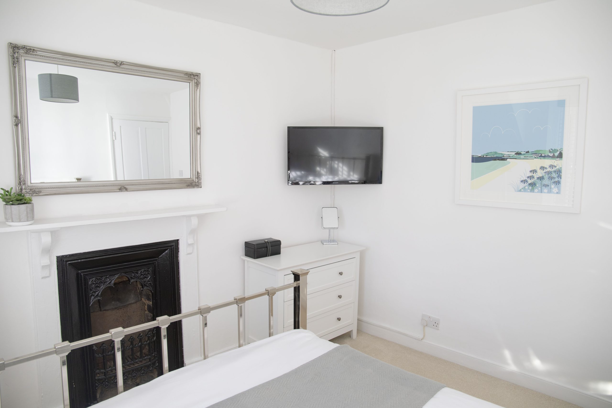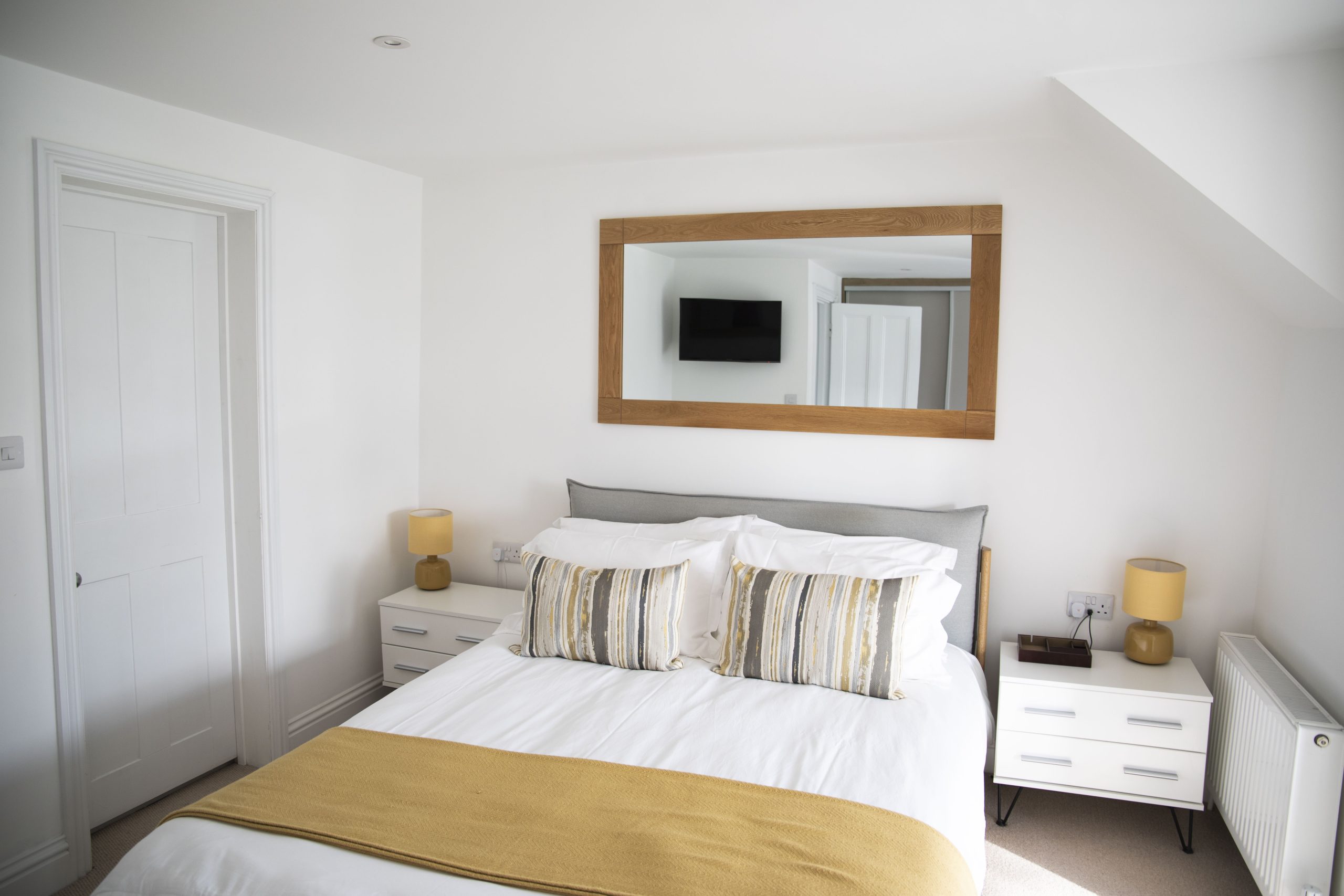 The second bedroom offers another king-size bed and television, while the third bedroom is a cozy single. A stylish family shower room with a toilet and washbasin completes the upper floor. The entire home is warmed by efficient electric heating, ensuring comfort throughout your stay.